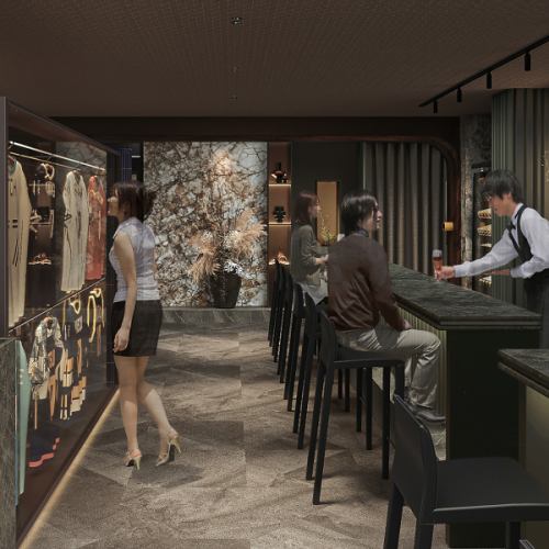 バー併設。カウンターやソファ席完備。シックな内装と照明が、大人のための上質な空間を演出し、お酒を楽しむのに最適。クラフトジンやカクテルなどの品揃えが豊富◎お気軽に立ち寄って、至福のひとときをお過ごしください。